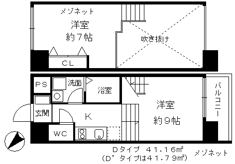 | ■専有面積28,27u〜41,79uまで4タイプあります。最上階はメゾネット。 | ||